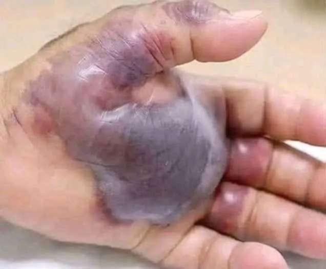What started as a small, seemingly harmless sting can quickly escalate into a horrifying and life-threatening medical emergency. That tiny pinprick, the unassuming bump, or even a mild itch can sometimes be the first warning sign of something much more sinister—a rapidly spreading infection that, if ignored, can lead to devastating consequences. The chilling image shared here shows a hand that’s swollen, almost unrecognizable, with deep darkened areas that look almost like bruising or even burnt skin. It’s a stark reminder that when it comes to infections, time is of the essence.