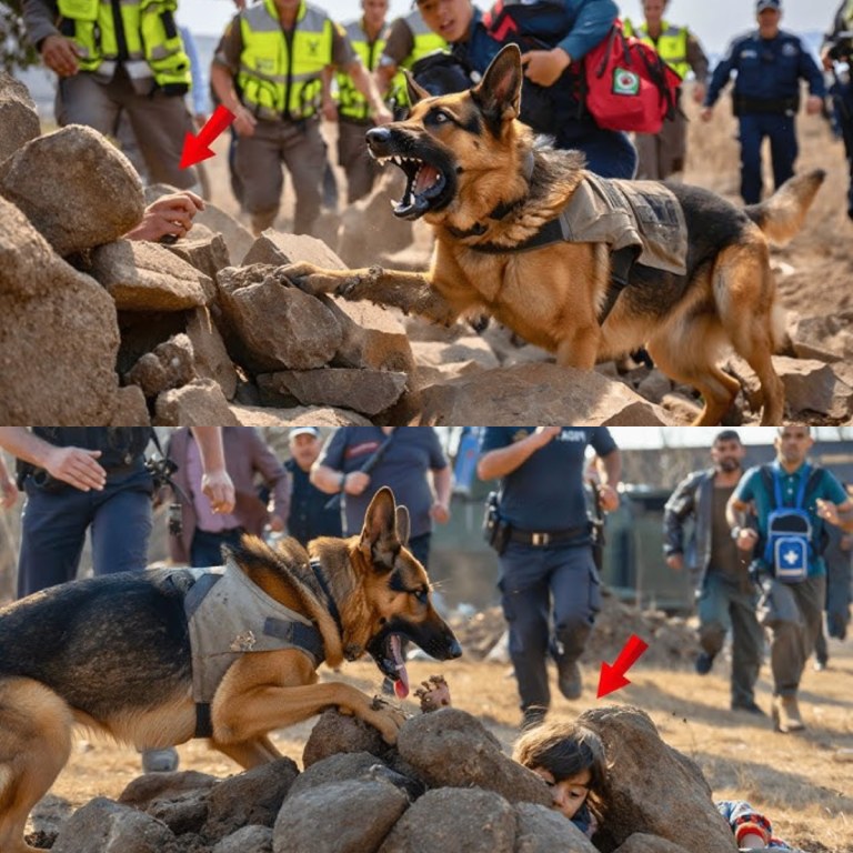 Bruno bolted, low and fast, straight toward a narrow stone chute choked with broken branches and rock. What happened next wasn’t protocol. But after fifteen years in search and rescue, Mark knew: when a dog like Bruno speaks, you listen. Bruno stopped at the base of a slope about eighty yards away, where a cluster of flat boulders sat wedged like an unnatural puzzle. He began digging at the dirt, nose pressed against a patch of disturbed ground. Then he barked again—three short, insistent barks, like a code.