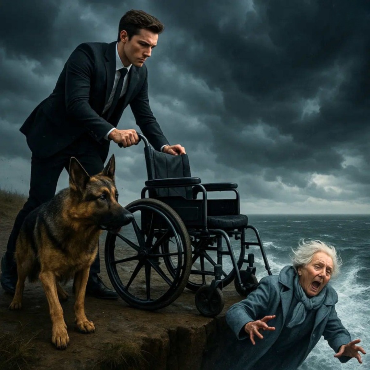 Suddenly, Ethan lost his footing. His body tipped backward, and before he could react, he felt himself falling toward the edge of the cliff. His scream was swallowed by the wind as he plummeted toward the same jagged rocks where his mother had met her fate. His last thought was of the dog, standing at the top, staring down at him—his loyal companion, now his unyielding judge.