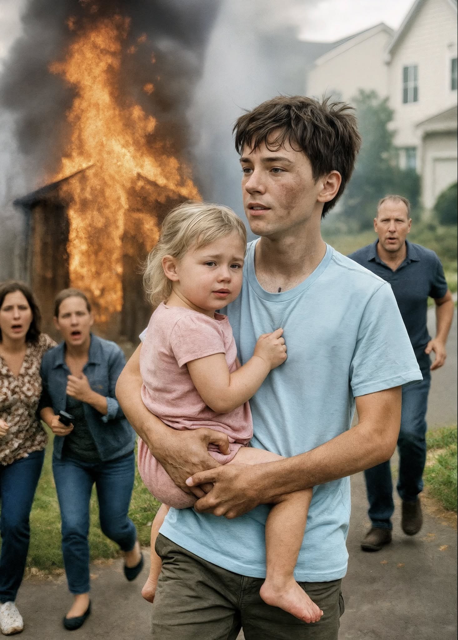 Then came the sound that still haunts me at night: the terrified scream of a baby near the burning shed. Before I could process what was happening, Ethan moved. He threw his phone to the grass and ran straight toward the flames, without a second thought.
